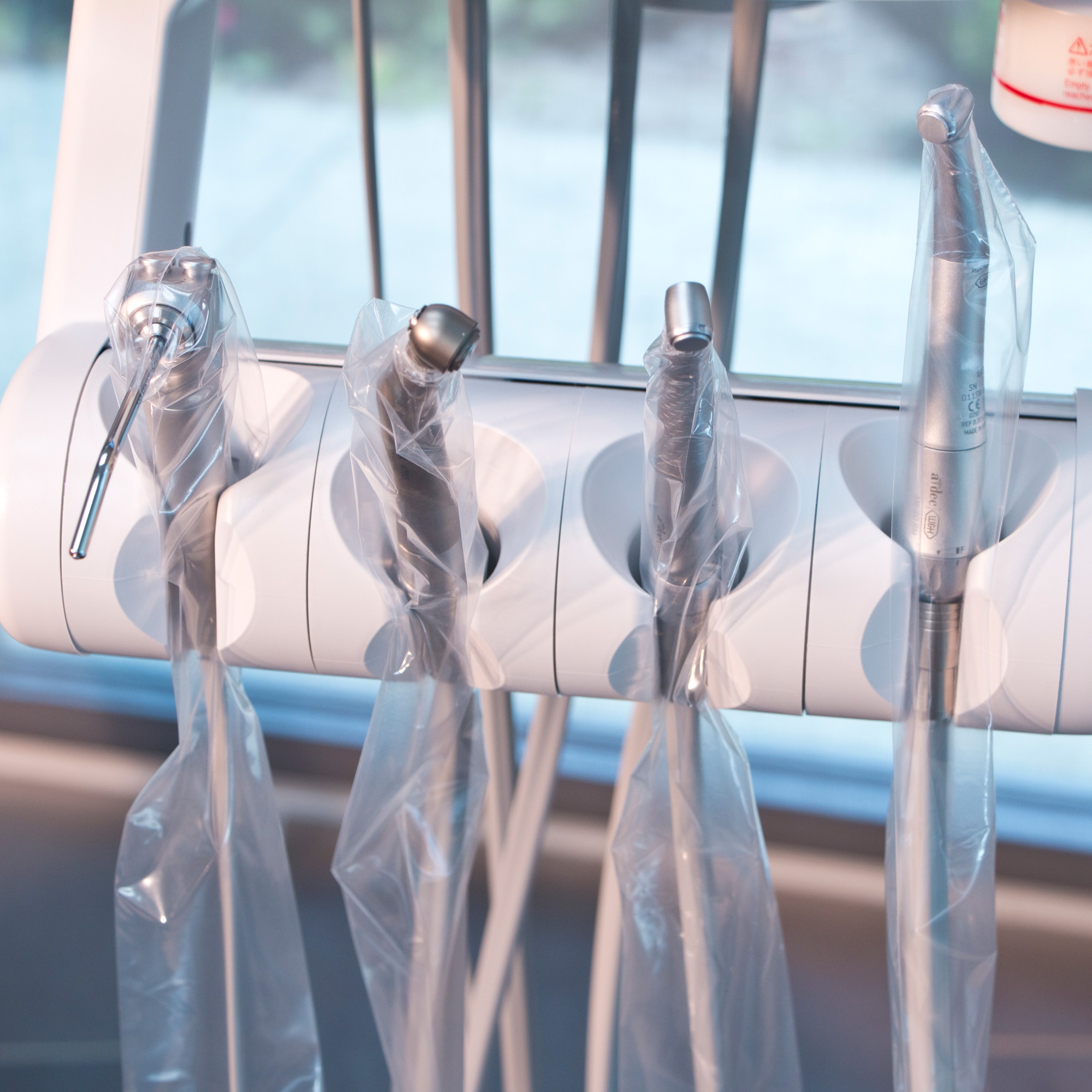 Simply “drop” your 3 way syringe into our EasyFit Dental tubing Cover and it will automatically land into the correct position for immediate use. No need to look for the opening or to manually feed the tip through. The extra length covers the dental tubing that is subject to spray contamination while it crosses your patient’s chest. The tapered tip design reduces the volume of material under your thumb resulting in better tactile control.