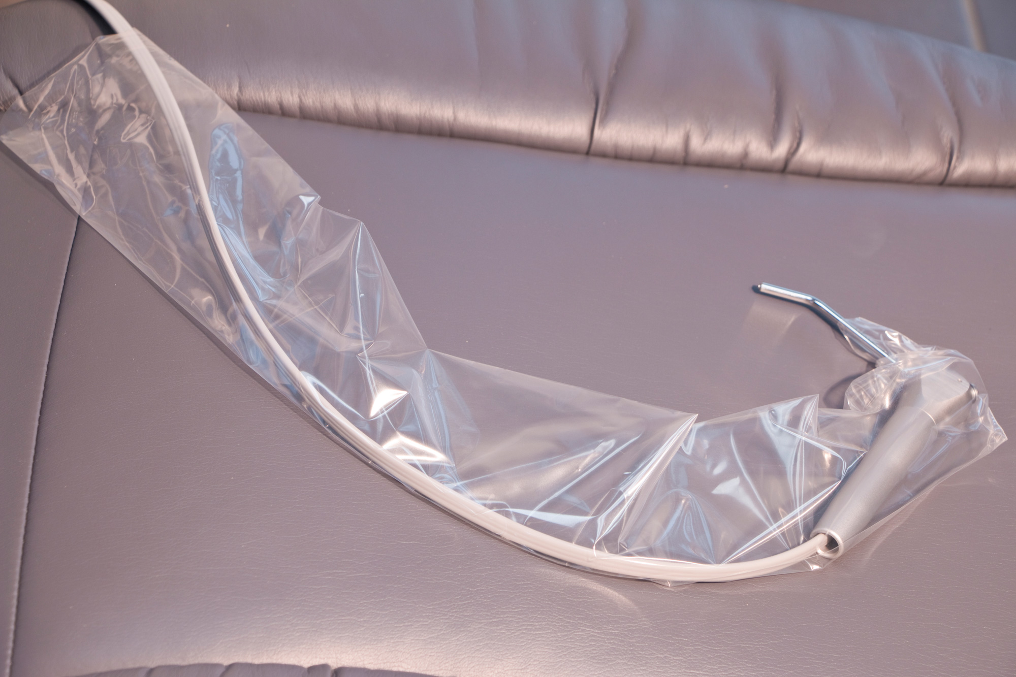 This 3″ wide EasyFit Dental Tubing Cover is especially made to fit coiled tubing. Simply “drop” your 3 way syinge into the top and it will automatically land in the correct position for immediate use. No need to look for the opening or to manually feed the syringe tip through. The extra length covers the dental tubing that is subject to spray contamination while it rests on your patient’s chest. The tapered tip design reduces the volume of material under your thumb resulting in better tactile control.